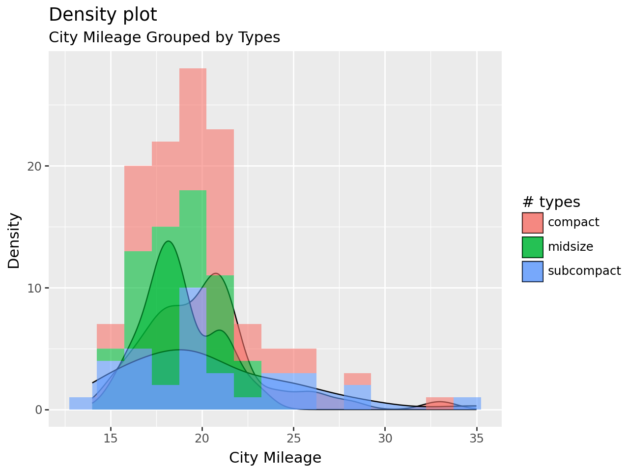 ggplot(mpg_selected, aes("cty", fill="types"))